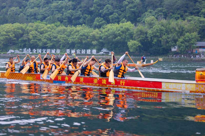 奮楫爭先啟新程,逆流而上譜新篇。5月31日,正值端午佳節,第九屆新安文化節龍舟賽活動盛大啟幕,新安股份領導吳嚴明、周曙光等親臨現場觀賽助陣。
